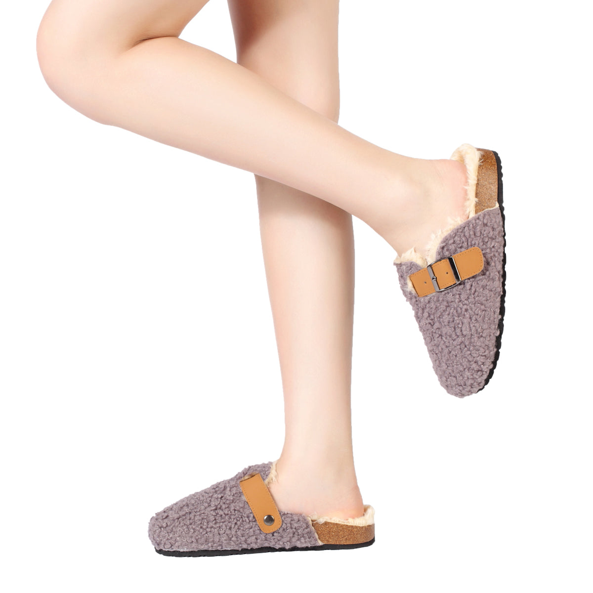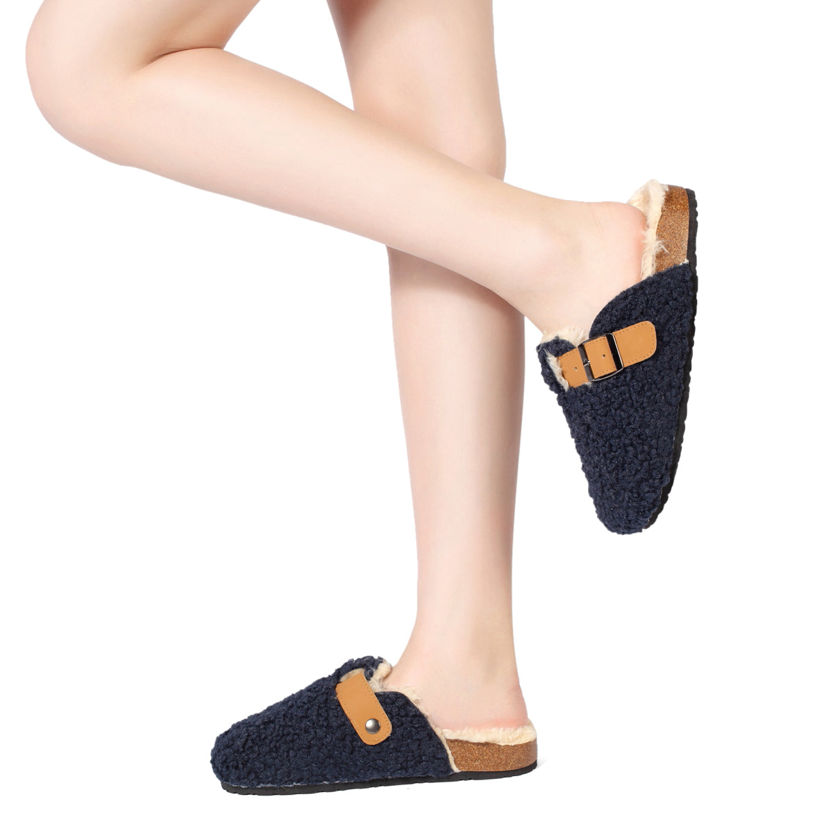 Women's Plush Warm House Slippers Memory Foam Cork Clogs